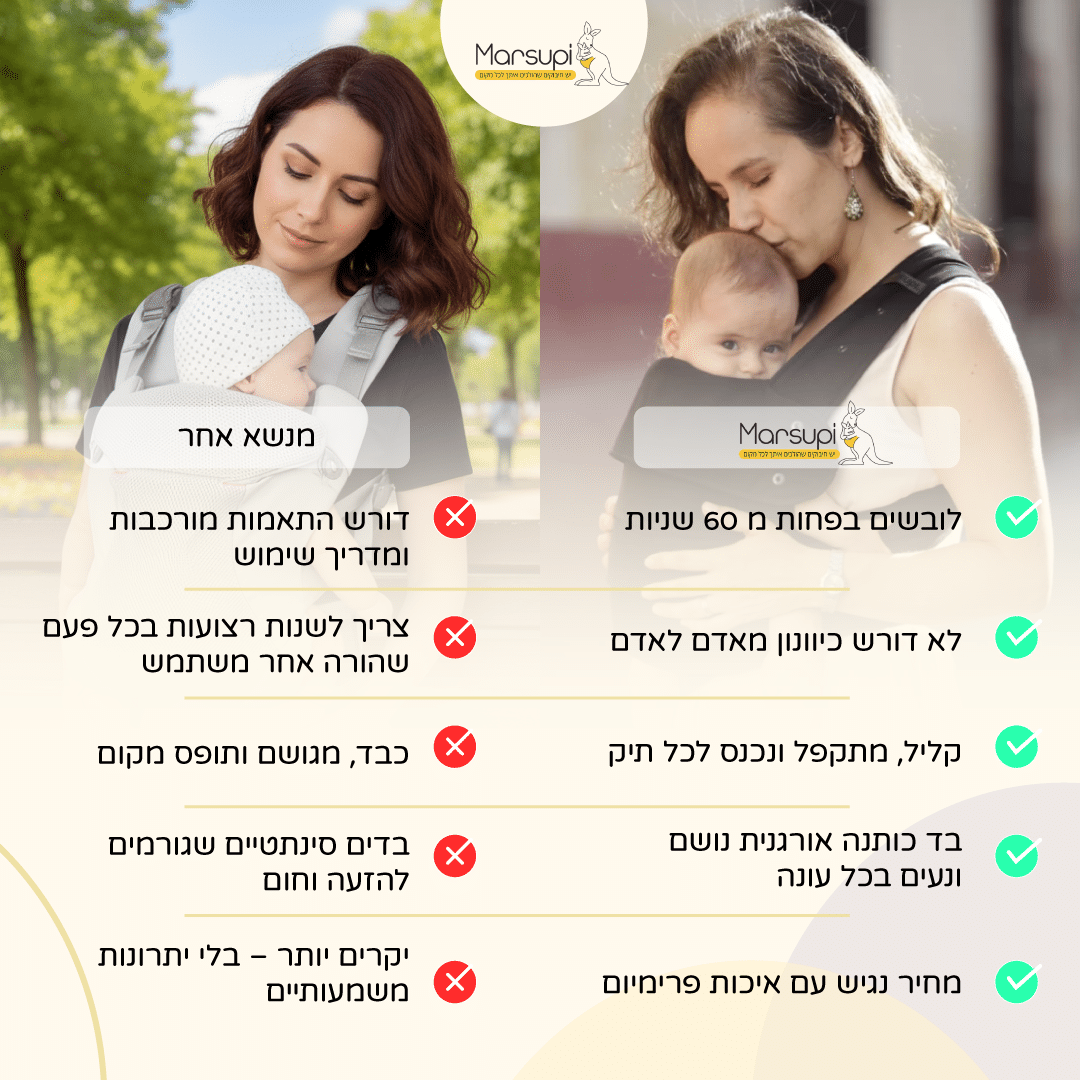 הנחיות אלו הן לכל דגמי מנשאי מרסופי, לכל תנוחה נשיאה ולכל גיל.